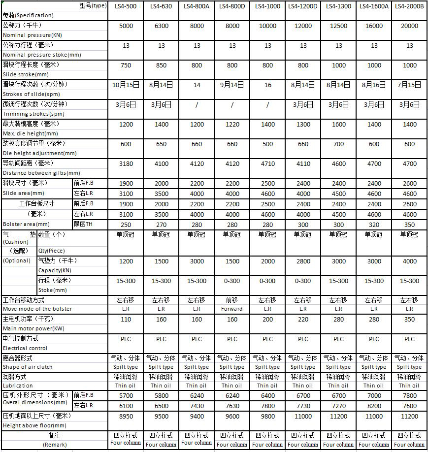 • 產(chǎn)品名稱(chēng):LS4系列閉式四點(diǎn)多連桿機(jī)械壓力機(jī)