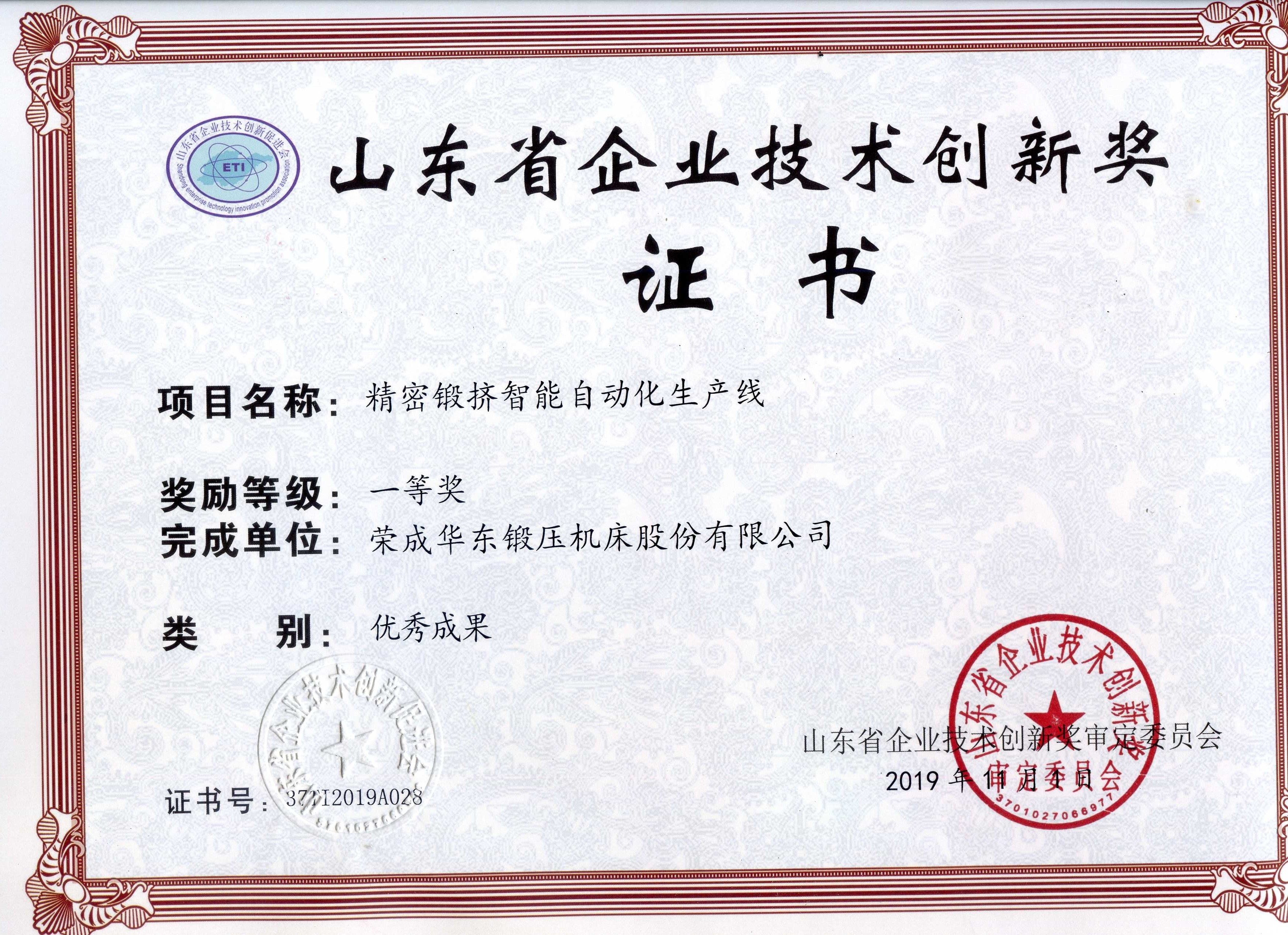 山東省企業(yè)技術(shù)創(chuàng)新獎-大型高速機械壓力機自動化線